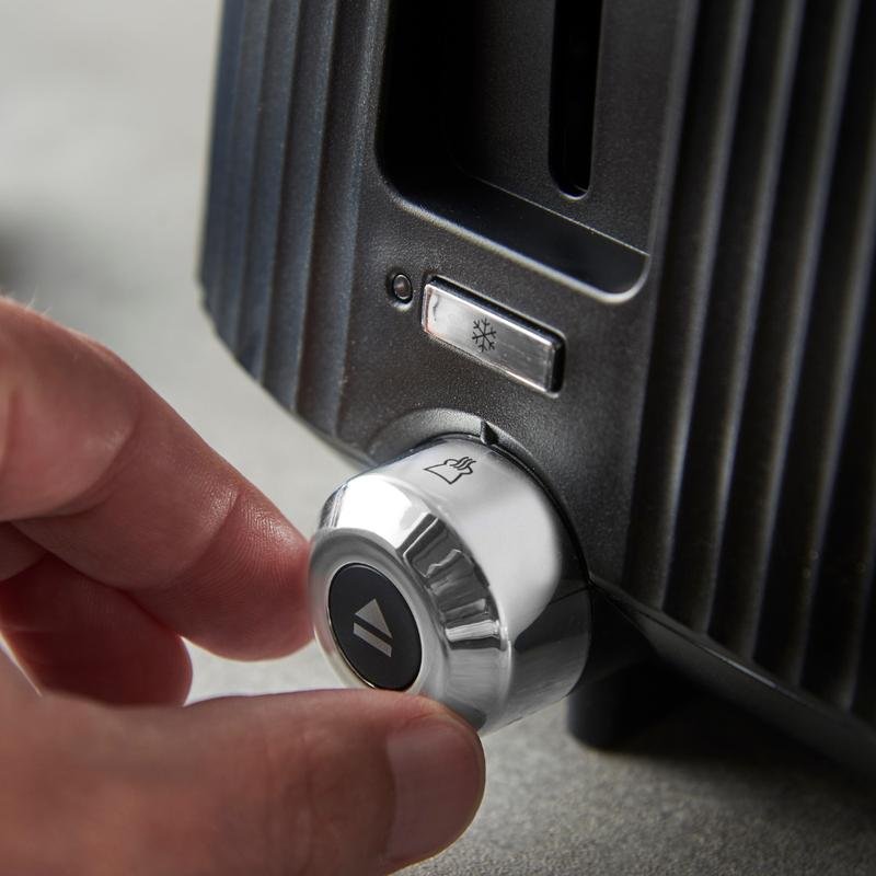 • Az egyik legkedveltebb funkciója az Emelés és Megtekintés opció: ez lehetővé teszi, hogy anélkül, hogy le kellene állítanod a pirítógépet, megtekintsd a kenyér sötétedésének szintjét, így pontosan olyan pirítottat kapsz, ahogyan szereted. Emellett a Fagyasztott élelmiszerek funkcióval közvetlenül fagyasztott kenyérből is készíthetsz friss, pirított szliceket – nincs szükség előzetes defrostalásra.